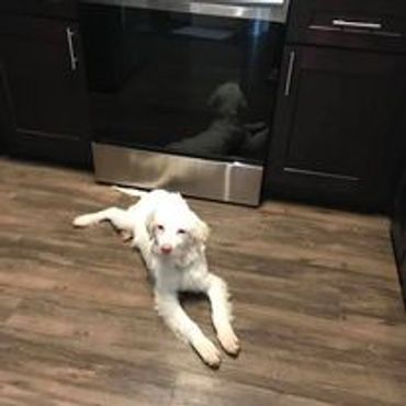 Cloud a Pyrenness mix was found running the streets in Jackson and he was caught by his foster mom near a stream. His foster mom work with him and he turned into a fantastic dog and he was adopted by an amazing family.